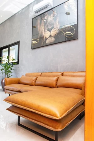 Sofá Ibiza Couro Legítimo La Paz C/ Chaise Camel 2.70mt