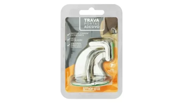 • Trava Portas Fixação Adesiva Cromado – Smartfix
